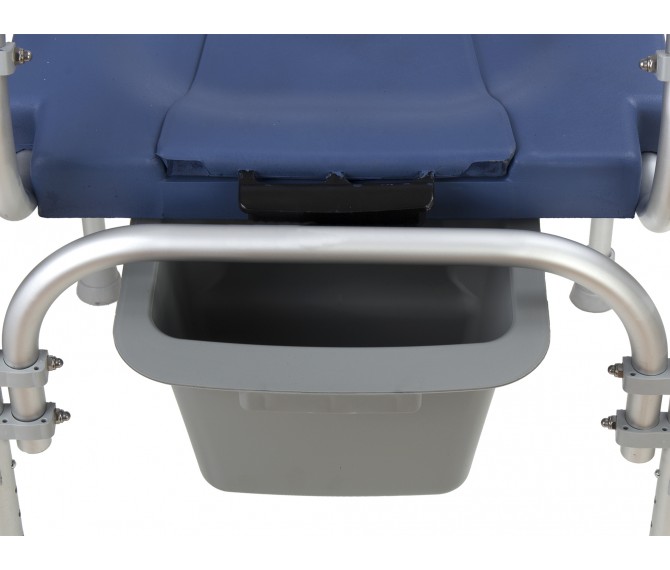 Funciona como cadeira sanitária e de banho, com um assento de conforto, com buraco e recetáculo para fins sanitários. Pode utilizar a cadeira sobre a sanita, regulando a sua altura de forma a que facilite ao utilizador sentar, sem se baixar demasiado, para isso, basta retirar o recetáculo (aparadeira) e encaixar a cadeira na sanita de forma a fazer as necessidades diretamente na sanita. Serve também como cadeira de banho, sendo fabricada em alumínio.