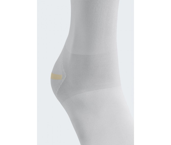 É fabricado num material macio, com efeito antiodor que garante um agradável conforto de utilização e uma fácil colocação. Malha com diferente elasticidade na região da articulação permite um ajuste ideal e reduz a formação de pregas na meia com o movimento do dia-a-dia. A costura especial do calcanhar oferece um alívio ótimo da pressão nesta região e a marcação de cor permite uma fácil verificação de tamanho e facilita o posicionamento correto.
