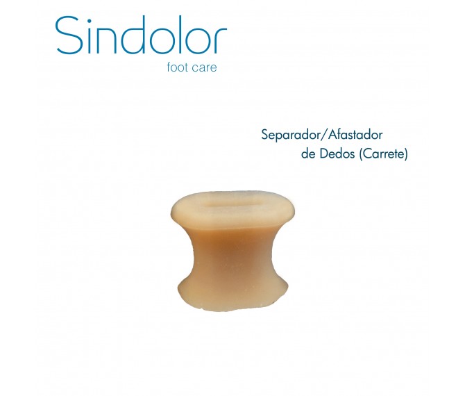 O separador/afastador de dedos (carrete) em silicone auxilia no realinhamento do dedo gordo, para aliviar as mazelas do joanete, indicado para a separação do segundo dedo, evitando a fricção, sobreposição e abrasão ocasionada pela irritação, calos e feridas.