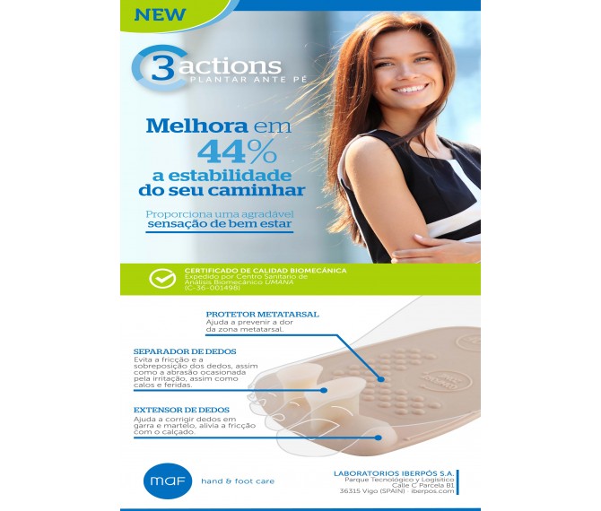 O plantar antepé possui o certificado de qualidade biomecânica dado pelo Centro Sanitário de Análises Biomecánico UMANA (C-36-001498) de Espanha. O estudo que suporta este artigo conclui que o mesmo melhora em 44% a estabilidade do caminhar, proporcionando uma agradável sensação de bem-estar, além das 3 funções: Separador de dedos - evita a fricção e a sobreposição dos dedos, assim como a abrasão ocasionada pela irritação, assim como calos e feridas; extensor de dedos - ajuda a corrigir dedos em garra e martelo, alivia a fricção com o calçado; protetor metatarsal - ajuda a prevenir a dor da zona metatarsal.