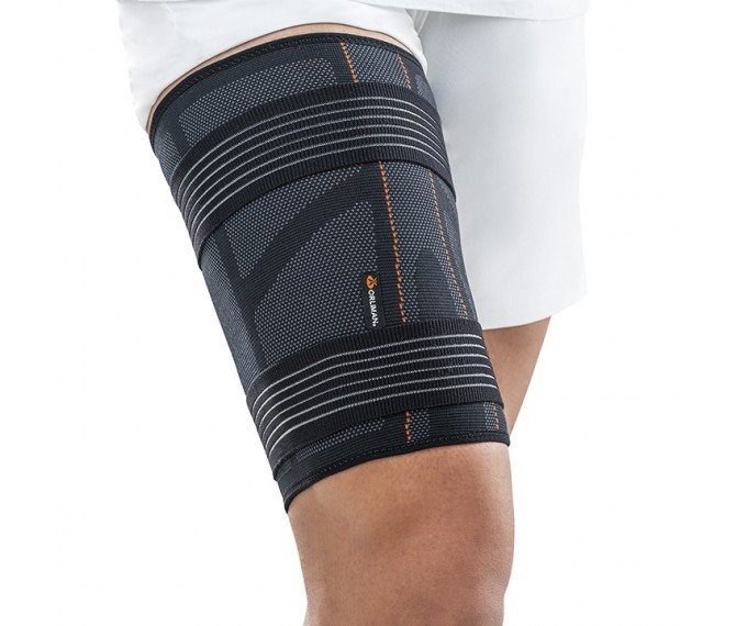 Coxa elástica funcional TheraGO em tecido elástico respirável com malha tridimensional. Sem costuras, permitindo uma utilização confortável e evitando fricções incómodas.