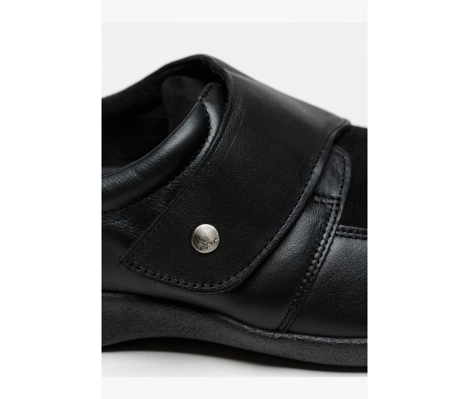 O modelo Doctor Monk é fabricado por uma pele natural e macia, com velcro, volume extra, palmilha amovível, sola anti deslizante em PU, sola com sistema de apoio em duplo arco, contraforte estável e rebordo macio com forro em espuma.