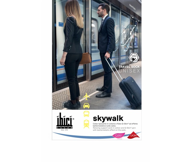 As meias de descanso Ibici Skywalk, devido à sua malha confere uma elegância de uma meia unissexo e previnem as pernas cansadas e pesadas.