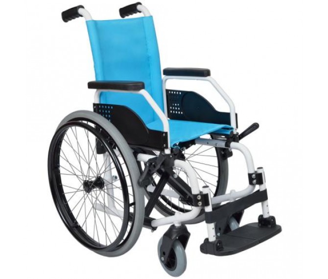 LILIPUT LIGHT é uma cadeira de rodas infantil em alumínio, ideal para crianças ativas, de design moderno e apelativo. Tubos brancos e estofos em várias opções (pistachio, azul, rosa ou vermelho). Apoia braços destacáveis e apoia pés ajustáveis em altura e ângulo lateral, com paleta. Com rodas dianteiras maciças e rodas traseiras de Ø550mm (maciças ou pneumáticas). Também disponível com rodas de Ø300mm (trânsito). Vasta gama de acessórios e opções disponíveis.