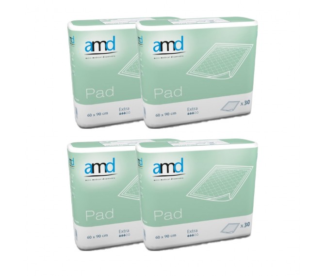 O resguardo AMD PAD Extra 60x90 foi desenvolvido com uma tecnologia que privilegia a absorção, os produtos desta gama revelam-se um excelente auxilio no momento das refeições, mudas ou absorção de fluidos. Para quando necessita de uma proteção de um sofá, cadeira ou cama. Descartável, absorção 1000ml. Contém 30 unidades.