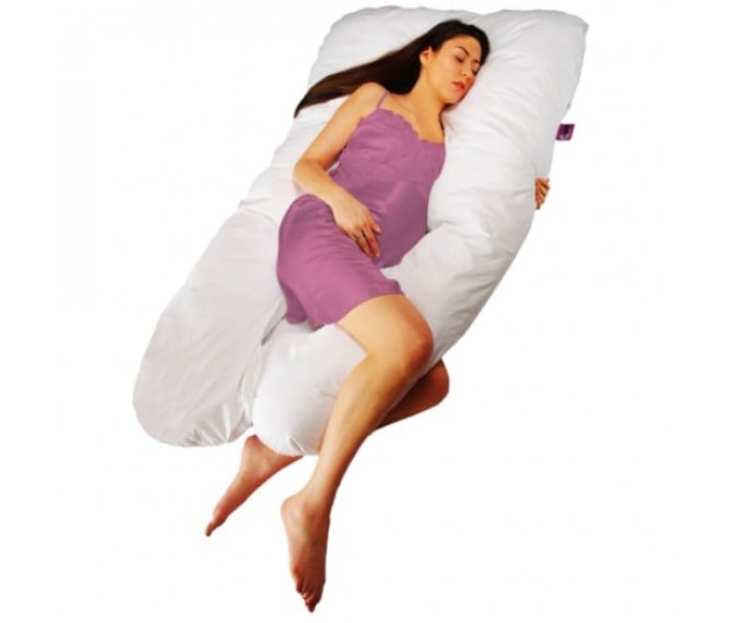 Almofada de Gravidez e aleitamento. Devido ao seu design, não necessitará de utilizar várias almofadas para encontrar uma posição confortável para o descanso.