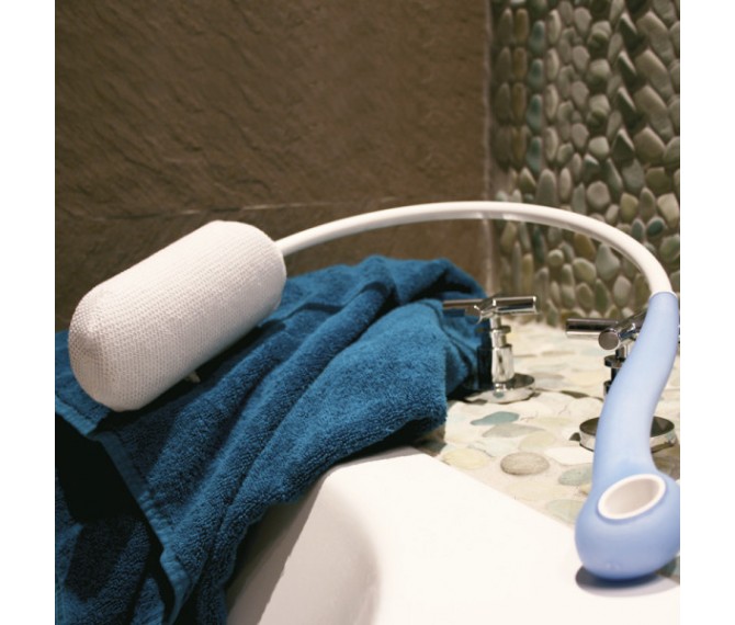 Esponja curva e longa lava costas, muito útil para alcançar todas as costas quando há um défice de mobilidade ou restrição de movimentos. A esponja destaca-se do cabo e é feito de um material especial que o torna eficaz para a lavagem sem absorver demasiada água, o que significa que o toalhete permanece leve mesmo quando molhado.