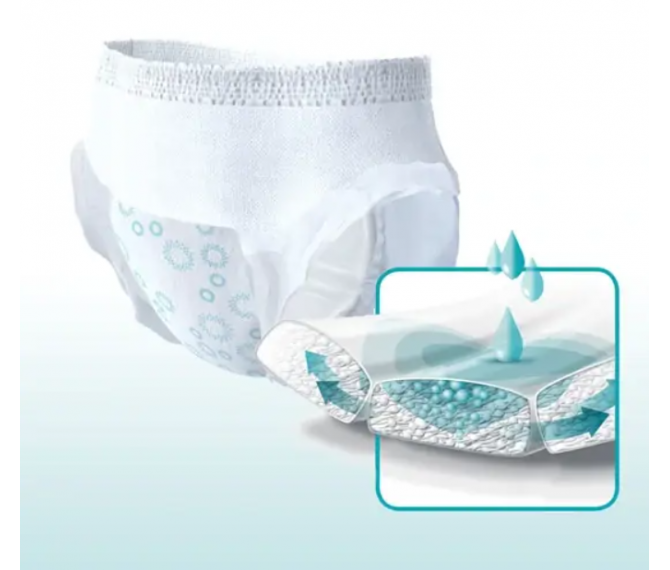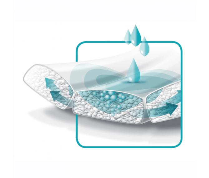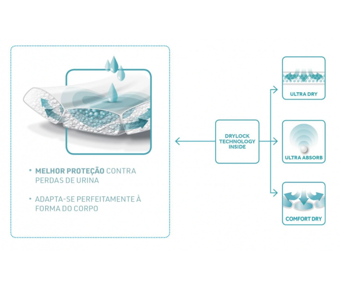 - Núcleo superabsorvente: Absorve rapidamente a umidade, mantendo a pele seca e confortável