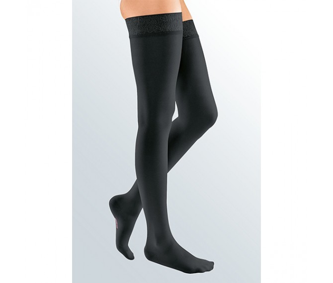 As meias elásticas são um dispositivo médico no qual só com tiragem de medidas se consegue ter a compressão clinicamente correta em toda a perna. Usar um tamanho maior ou menor que o correto só fará o utente piorar, correr riscos desnecessários e daí surgirem problemas graves que são totalmente evitados com o uso do tamanho certo! Não brinque com a sua saúde! Consulte a tabela de medidas do artigo. As medidas devem sempre ser tiradas logo ao início da manhã, a pessoa deve estar de pé, com as pernas afastadas e o peso distribuído pelas duas pernas. Para uma meia até à raiz da coxa ou collant, devem ser tiradas 4 medidas: Tornozelo, barriga da perna, coxa e altura da perna (ver na tabela de medidas o local onde deve tirar essas medidas). Para medir a altura de perna deve estar de pé e medir a altura da perna pelo interior da mesma, desde a base do calcanhar até dois dedos abaixo da dobra do joelho.