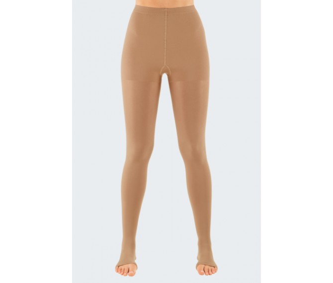 Esta meia é uma solução económica para problemas venosos. É muito durável, com uma boa relação preço/qualidade. Collant de biqueira aberta ou fechada.