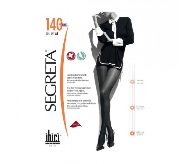 Collant de descanso com 140den em malha de favo, com calcanhar anatómico. Os denier representam a espessura do fio e não a compressão. Os 140den são os mais indicados para a prevenção e por essa razão são taxados à taxa reduzida de iva.